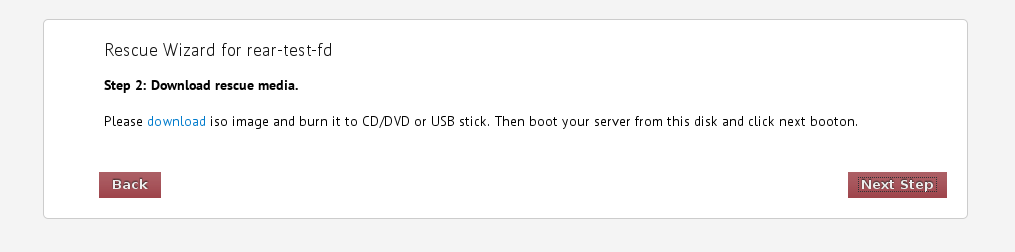 System checks access to storage device where the data from the selected restore point was stored. If ssh key is installed, it proceeds, If no SSH key was installed, it requests ssh credentials. Download link for rescue image is then provided: