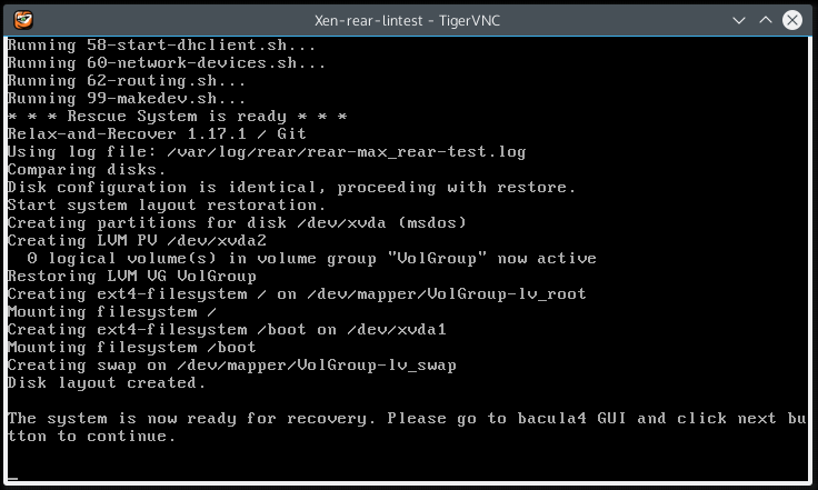 Please wait for until you are prompted to return to the Bacula4 GUI: